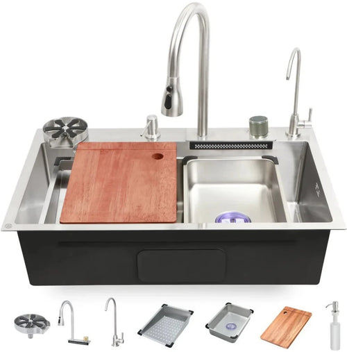 Metlux Waterfall Smart Kitchen Sink Black 30x18x9