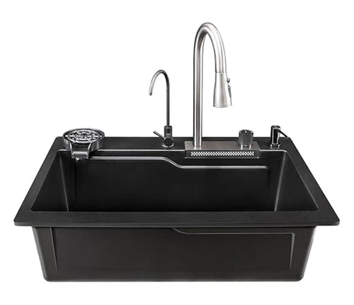 Metlux Smart Waterfall Kitchen Sink Quartz Material Black 30x20x9 Inchs